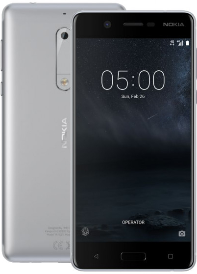 Nokia 5 Dual SIM je stylový chytrý telefon v krásném kovovém těle, se solidním výkonem, snímačem otisků prstů a připojením LTE. 5.2" IPS HD displej 2.5D Corning Gorilla Glass, rozlišení 1280 x 720 bodů, 8jádrový procesor Qualcomm Snapdragon 430 až 1.4 GHz, 2GB RAM, 16GB interní paměti, fotoaparáty 13MPx PDAF a 8MPx, slot pro microSD, microUSB, Bluetooth, NFC, WiFi, GPS, Dual SIM, 3000 mAh baterie, operační systém Android 7 Nougat.